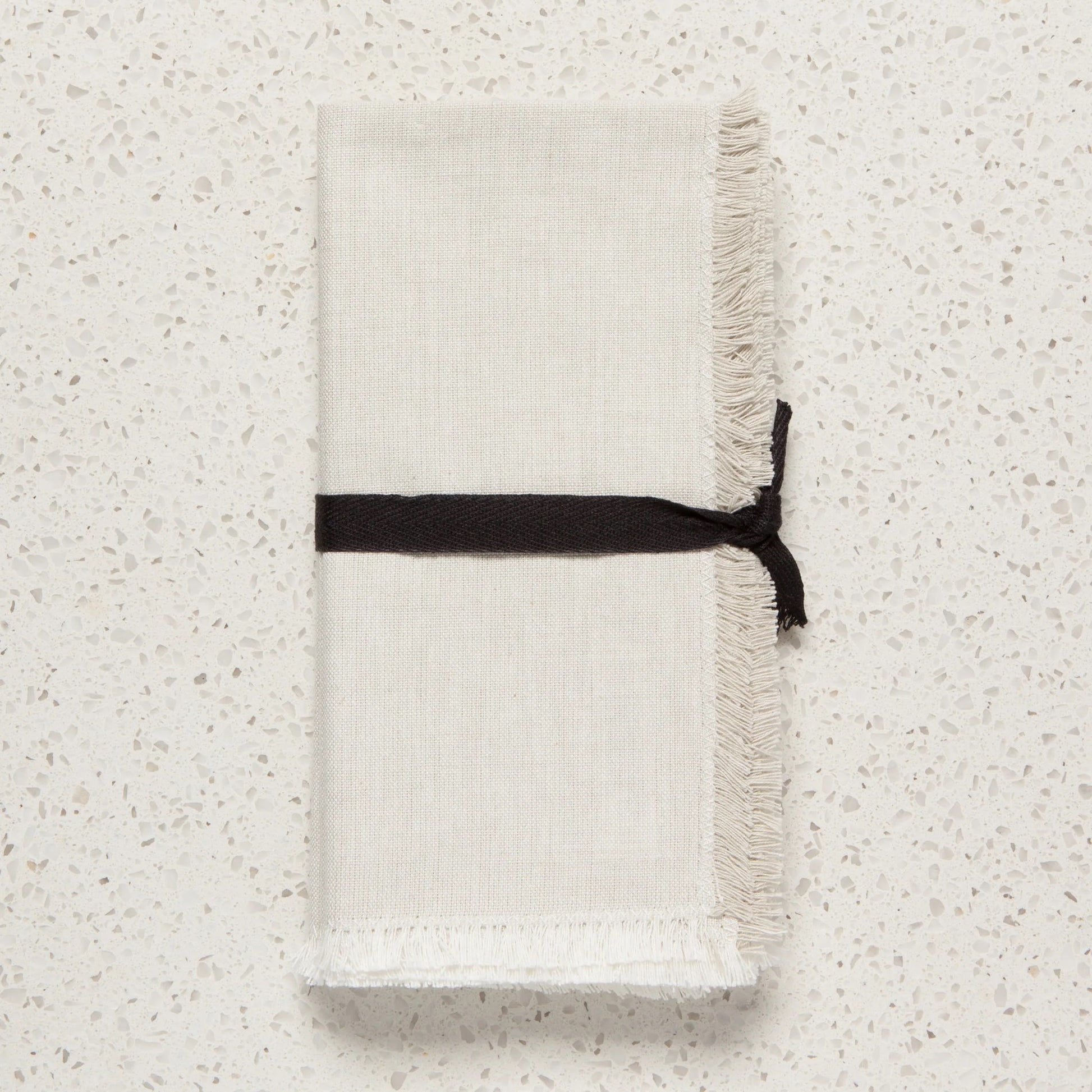 Chambray weaves color with white, resulting in muted, soft variations of favorite shades. Raw edges spotlight the technique in two-color fringes that bring a textural sophistication to your meal.