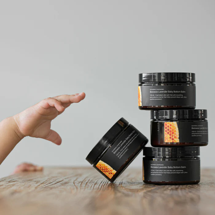 120 mL • NEW SIZE! Soft as a baby’s bottom. Formulated specifically for babies, our Beeswax Lavender Baby Bottom Balm is made with healing sweet almond oil, nourishing shea butter, protective beeswax, and calming lavender essential oil to protect baby’s bottom from diaper rash, redness and irritation.