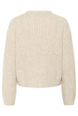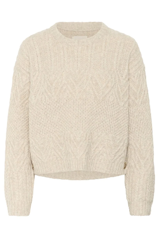 This warm sweater is appealing thanks to its rich texture and decorative buttons on the sides. Its thick knit with varied patterns adds a handcrafted touch. Style tip: wear it with jeans for a casual look or a leather skirt for a bolder style.
