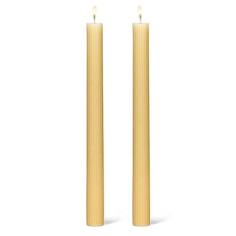 This classy yellow Ribbed Taper Candle is the perfect blend of refinement and sophistication. Crafted out of 100% paraffin wax, its sleek, textured design adds an elevated touch to any space. Whether placed on a mantle, dining table, or windowsill, it helps make surroundings extra warm and inviting. Virtually dripless, each candle has over 6 hours of burn time.