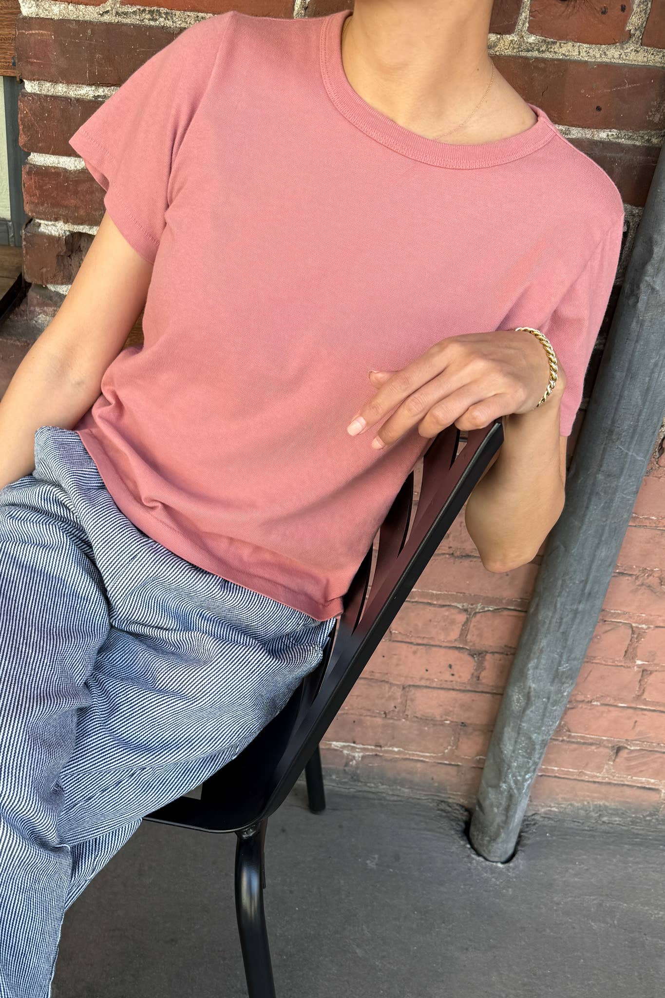 The quest for the perfect tee ends here. The first of its kind, The Little Boy Tee uses a heavier-weight 100% cotton premium jersey blend to give it a snug yet flattering fit with just the right amount of stretch. Its suitable cropped length makes it easy to pair with any high-waisted bottoms. Consider this little tee the perfect piece to remain a cherished part of your wardrobe season after season