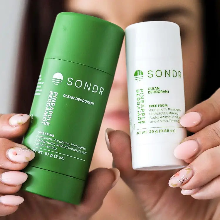 Picture this: you just crushed your favourite HIIT class and grab a fresh, icy smoothie. You feel energized, refreshed, and ready to conquer the rest of your day. That's our pineapple bergamot deodorant. Get energized with sweet, fruity and slightly spicy pineapple combined with the epic tart and floral notes of bergamot. Pineapple bergamot deodorant, like all other SONDR deos, is, and always will be free from aluminum, parabens, phthalates, baking soda and of course, animal testing and products.