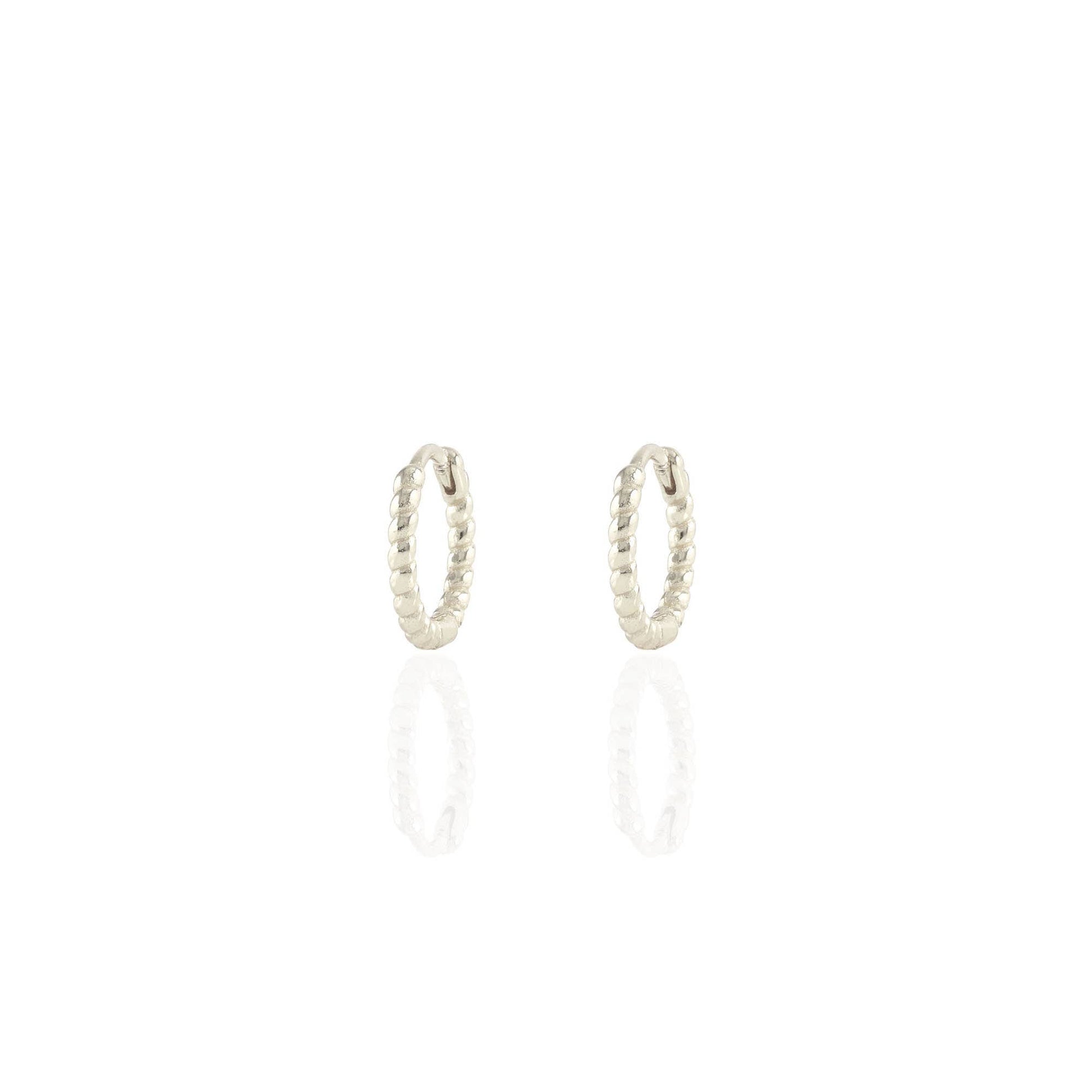 Hoop measures 12mm diameter with a hinged closure. Sterling silver.